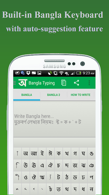 Ingin menulis Bangla dengan mudah menggunakan gaya fonetik Avro? Tidak mahu menggunakan mana-mana papan kekunci tambahan untuk menulis Bengali? Kemudian, aplikasi ini pasti akan memuaskan hati anda dengan antara muka mesra penggunanya.