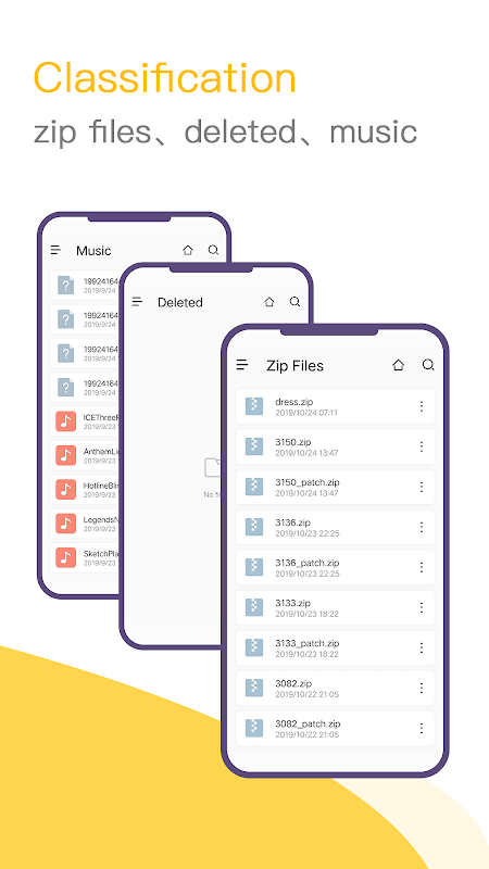 • Downloads / Images / Audio / Videos / Documents / New files : Your files and folders are automatically sorted by their file types and characteristics so that you can easily find exactly the file you are looking for.