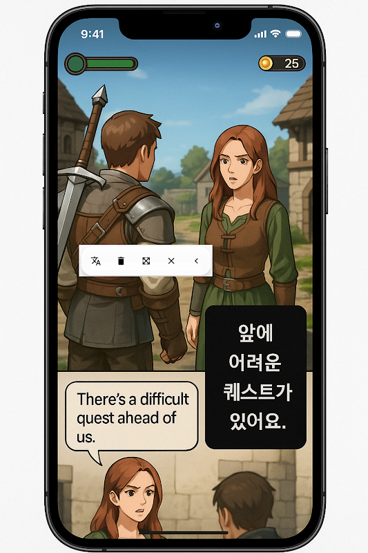 ✨ Easy Screen Translator – Terjemahan di Layar yang Lancar, Tanpa Gangguan Easy Screen Translator adalah teman cerdas dan ramping Anda untuk terjemahan di layar secara instan. Baik saat Anda sedang asyik bermain game, membaca webtoon, atau menggunakan aplikasi berbahasa asing, terjemahkan teks yang terlihat dengan mudah tanpa mengganggu alur Anda. 🚀 Mengapa Easy Screen Translator Menonjol: 🔍 Terjemahan Teks Layar Secara Real-Time Langsung tangkap dan terjemahkan teks langsung dari layar perangkat Anda. 🎯 Akses Tombol Mengambang Aksesibilitas selalu aktif dengan alat mengambang ramping yang tidak menghalangi Anda. ⚡ Performa Sangat Ringan Cepat, lancar, dan responsif — tanpa menguras baterai Anda. 🌍 Mendukung 13+ Bahasa Terjemahkan dalam Bahasa Inggris, Jepang, Korea, Mandarin, Prancis, Jerman, Spanyol, dan banyak lagi. Easy Screen Translator dibuat untuk para gamer, pelajar, profesional, dan pelancong — siapa pun yang membutuhkan terjemahan yang mudah dan cepat. Dengan izin minimal dan kenyamanan maksimal, ini adalah alat penting untuk pengalaman seluler global yang sesungguhnya.