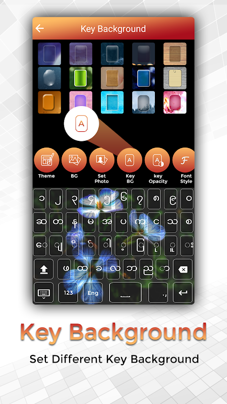 Mudah Typing Myanmar Keyboard, Font dan Tema mempunyai semua alat terkini untuk membuat papan kekunci lebih elegan.