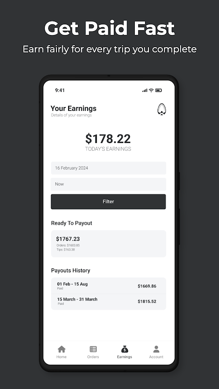 EazyIronDriver menawarkan sistem pembayaran yang telus. Anda memperoleh jumlah yang saksama untuk setiap laluan pengambilan atau penghantaran yang diselesaikan. Pembayaran dibuat dwi-mingguan berdasarkan bilangan pesanan yang berjaya anda kendalikan. Lebih banyak anda memandu, lebih banyak pendapatan anda.