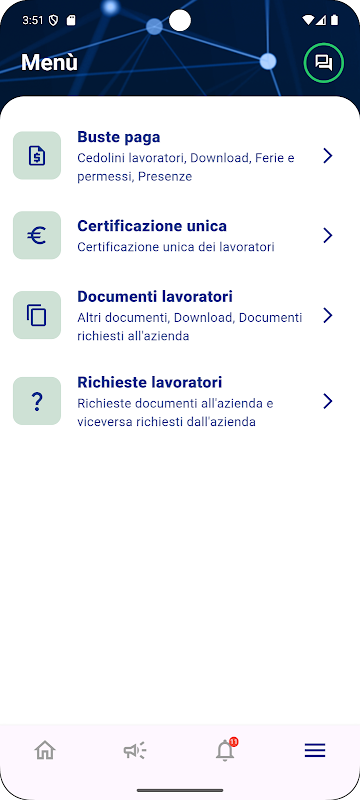 - Pekerja melihat slip gaji, CU, baki percutian, cuti, komunikasi syarikat, dsb., melalui portal web dan aplikasi mudah alih.
