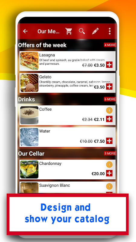✓ PENCIPTA KATALOG / MENU Mudah digunakan pereka menu & apl pencipta katalog untuk membuat menu / katalog digital dari mana tetamu / pelanggan boleh melihat tawaran anda dengan cara yang menarik, moden dan inovatif.