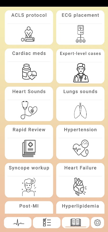 Harap maklum: jangan membuat diagnosis diri atau merawat diri sendiri. Aplikasi ini direka untuk membantu profesional perubatan merevisi bacaan ECG dan menghafal perubahan kecil. Itu tidak dimaksudkan untuk digunakan sebagai alat diagnosis atau perawatan, melainkan sebagai alat kajian / penyemakan.
