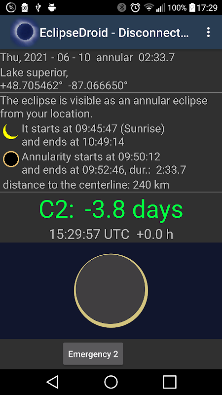 Aplikasi gerhana matahari untuk pengiraan waktu tempatan yang tepat untuk gerhana matahari.