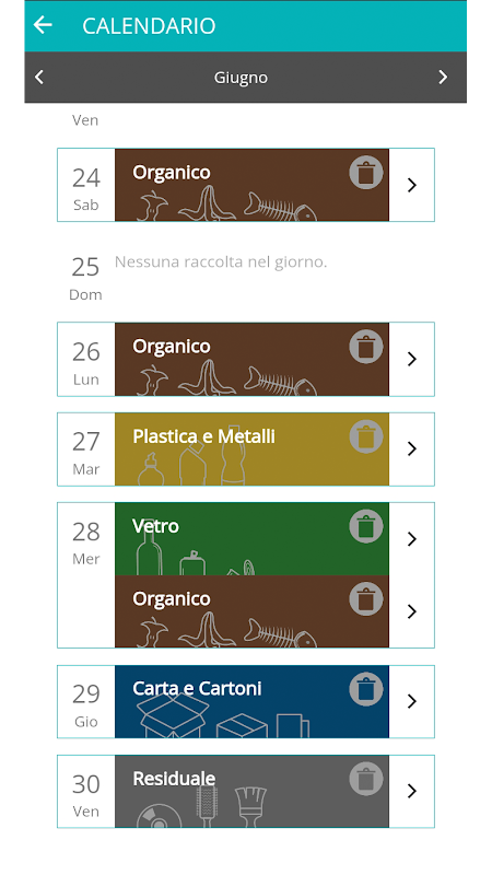 Maklumat App untuk pengumpulan sisa berasingan di perbandaran Basento Nord.