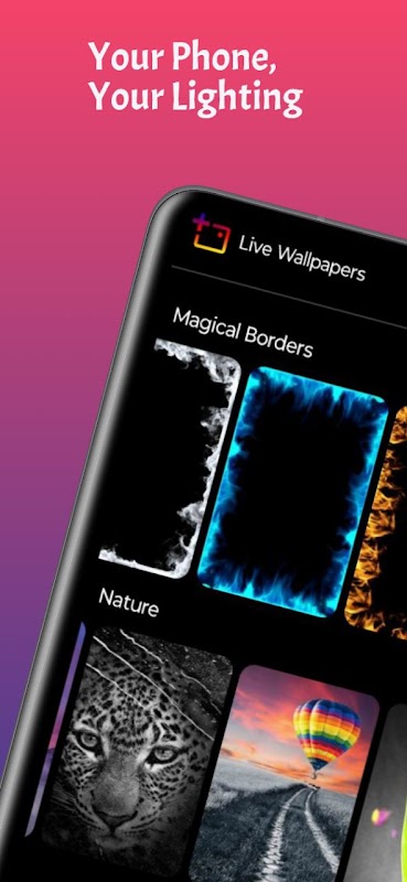 The Border Color Light - Rounded Corner for All Device App membawa pengalaman pencahayaan yang unik dan menarik ke skrin mudah alih anda. Anda juga boleh menukar kertas dinding skrin langsung anda dan menetapkan latar belakang imej anda sendiri untuk sentuhan yang diperibadikan.