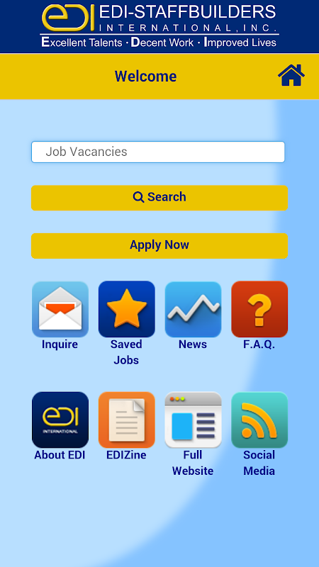 The EDI App is EDI-Staffbuilders International’s free recruitment and business tool that can be used to submit and process overseas job applications, inquiries on Services, follow-ups on status and Updates.