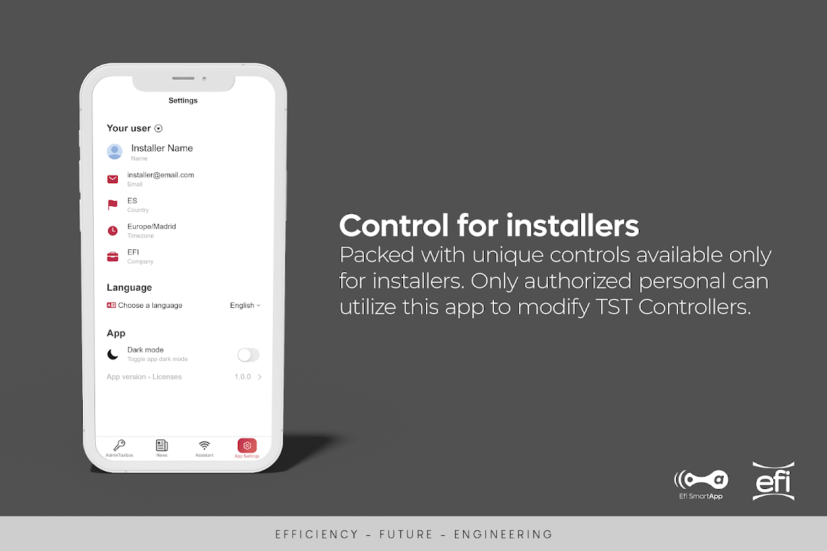 Aplikasi kotak alat untuk pemasang. Komisen & buka kunci peranti.