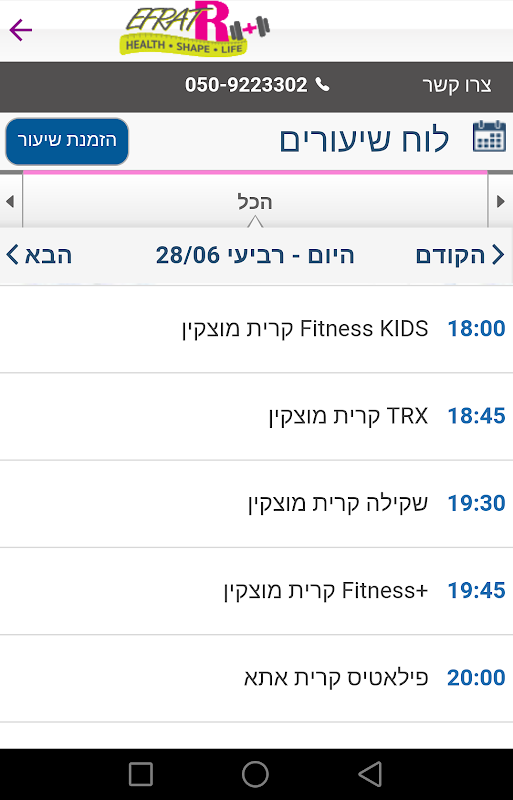 An app that allows you to sign up and cancel lessons online studio EfratR / Efrat Shape.