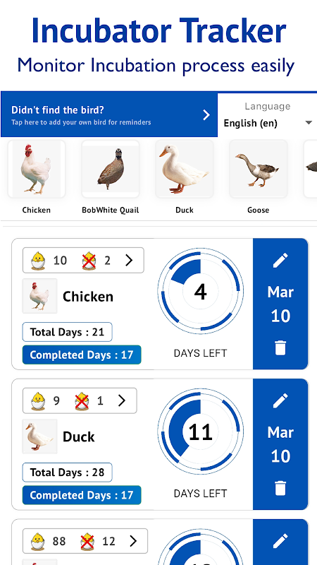 Uruskan inkubator anda dengan pembantu mudah untuk penetasan anda.