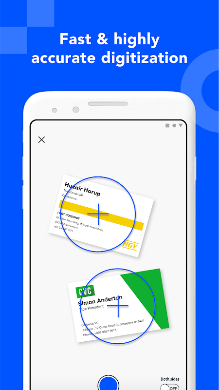 -Digitize both sides of a business card using enhanced scanning to create a complete digital card