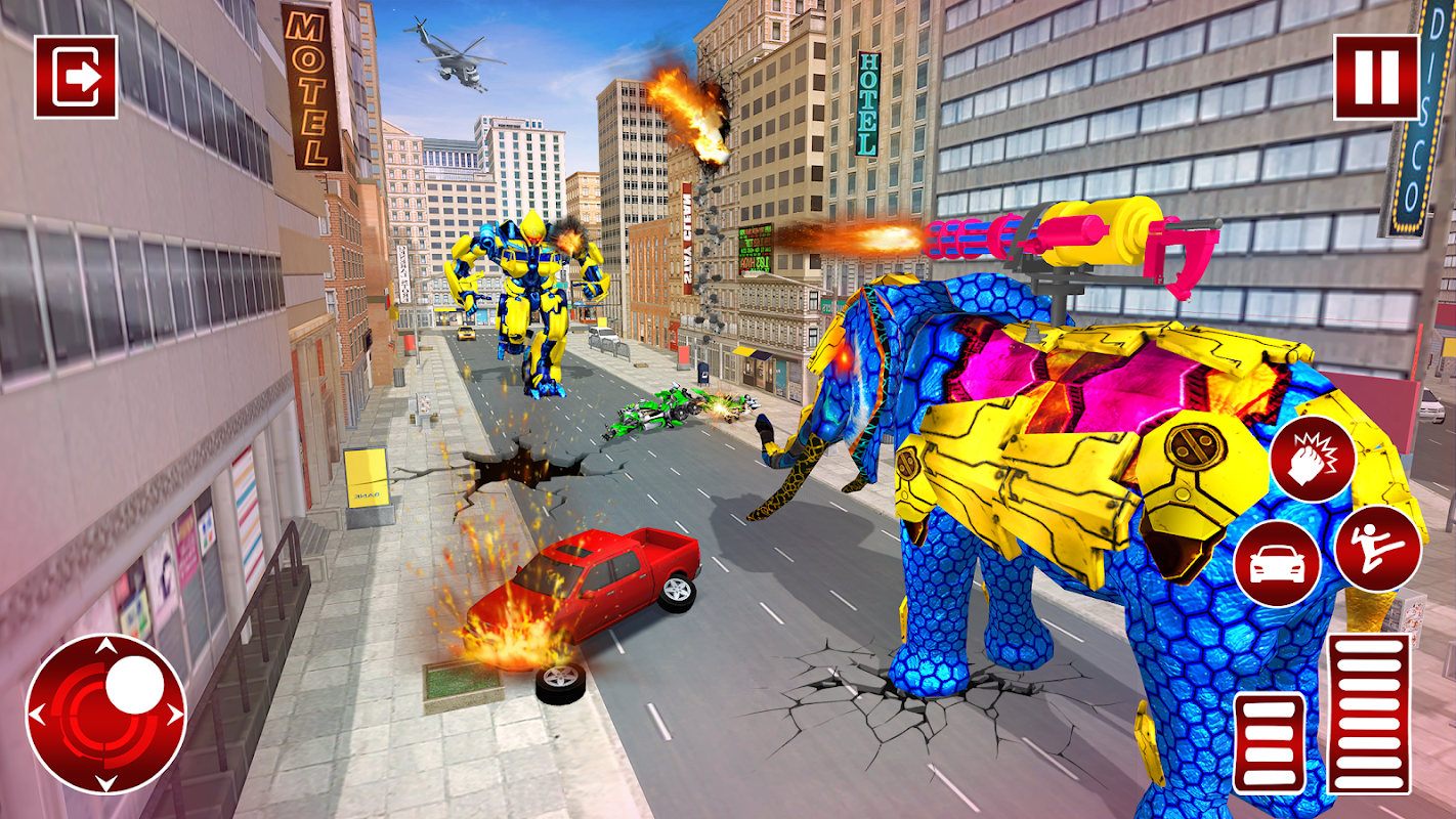 This new form of robot transforming games gives you detailed fighting experience which player contests in the shape of multi transforming robotic war by enjoying futuristic technologies of multi transforming games. Relish all smacks of animal robot fighting by making accurate use futuristic robot transform aptitudes during your stay in this ongoing elephant robot city rampage. This newly planned transmute robot game has monster animal robot in it which excels all other present forces of robot war games with special edition of animal robot transform knacks.