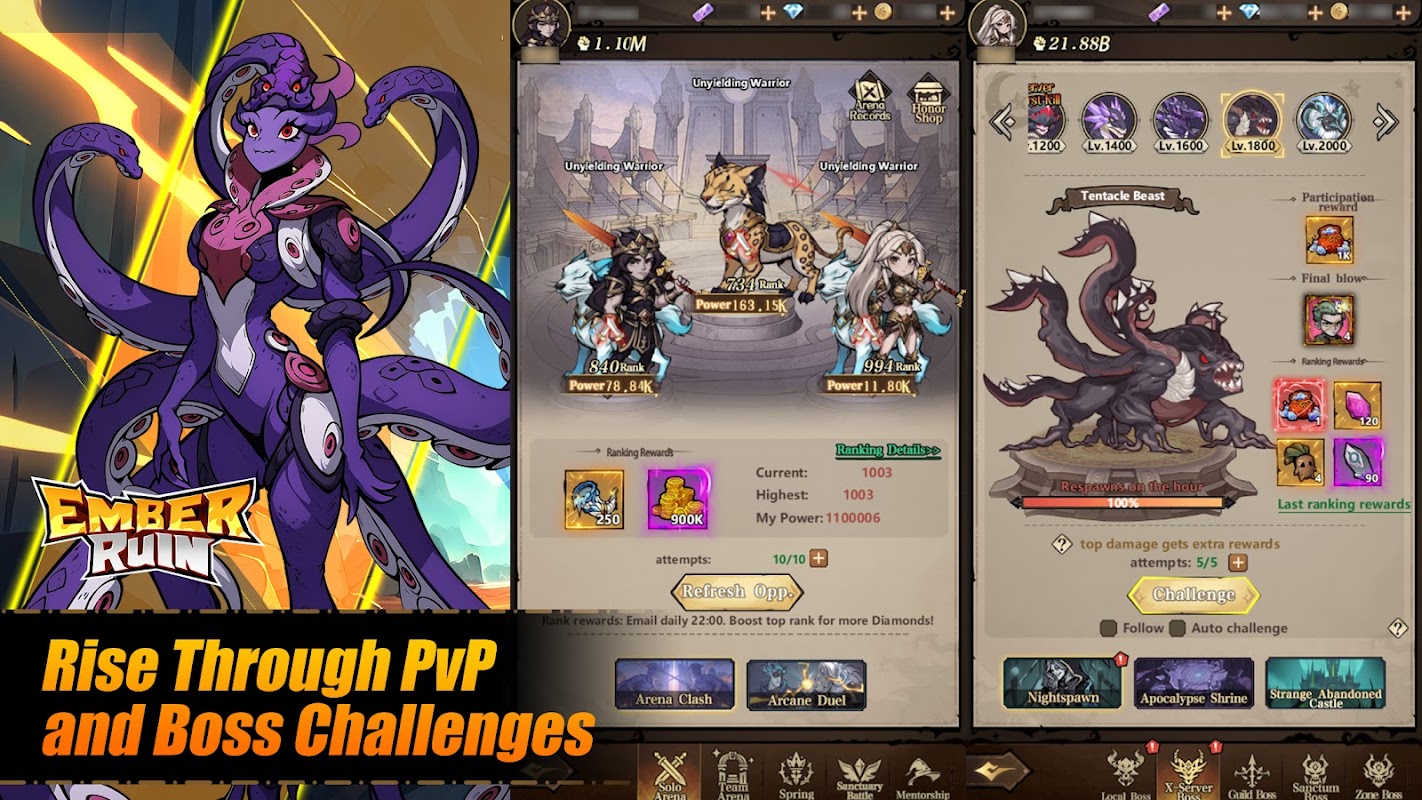 Selamat datang ke Ember Ruin! RPG fantasi gelap ini menjerumuskan anda ke dunia yang penuh dengan bahaya dan peluang. Jadilah pahlawan legenda dan ukir kisah anda merentasi medan perang di mana bayangan dan cahaya bertembung, menempa nasib anda di tengah-tengah huru-hara dan kuasa.