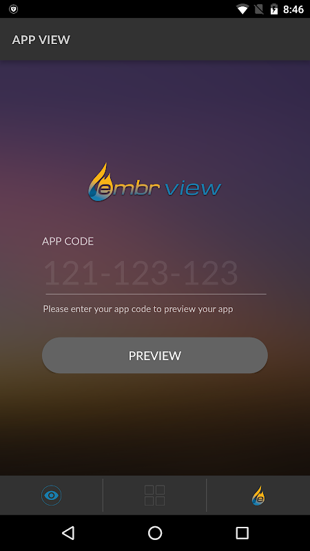 Embr View adalah aplikasi mudah alih yang membolehkan pengguna untuk melihat dan menggunakan aplikasi prototaip mereka. Peringkat Embr menjana kod apl apabila pelayaran dan kandungan aplikasi telah sedia. Ini kod 9 digit, apabila dimasukkan dalam Embr Lihat App, membolehkan pengguna untuk melihat aplikasi pada peranti mudah alih sebelum dihantar ke kedai app.