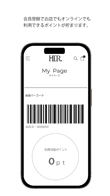 Apl rasmi HER. Dengan mendaftar sebagai ahli, anda boleh menggunakannya sebagai kad keahlian dan juga menyemak mata anda.