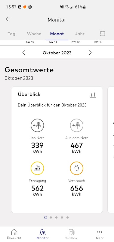 Dengan aplikasi energybase, anda dapat dengan mudah melihat berapa banyak yang anda hasilkan dengan sistem suria anda di bumbung anda sendiri. Anda juga dapat melihat berapa banyak yang anda gunakan sendiri dan berapa banyak yang dimasukkan ke dalam grid awam.