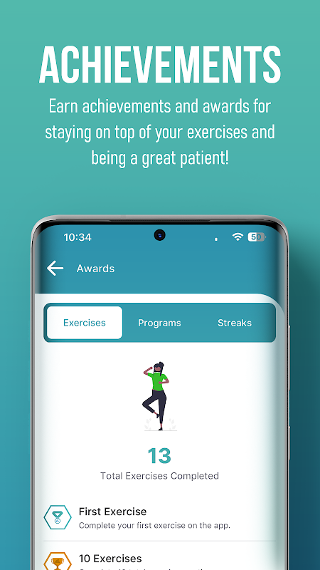 Menggunakan apl ini, anda boleh mengakses Program Senaman Rumah yang diperibadikan dengan video Arahan HD. Pada tab 'Mesej', anda boleh berkomunikasi dengan selamat dengan pembekal Terapi Engage anda. Semasa anda membuat kemajuan dalam program anda, anda akan memperoleh trofi maya dan lencana pencapaian untuk meraikan kejayaan anda! Lawati tab 'Anugerah' untuk melihat pencapaian anda dan menjejaki kemajuan anda.