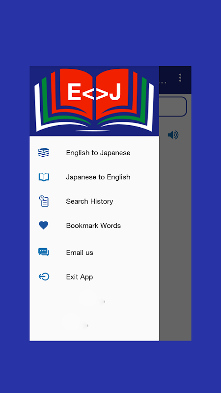 Bahasa Inggeris <> Kamus luar talian Jepun .Antara muka mesra pengguna dan sistem carian perkataan yang mudah.