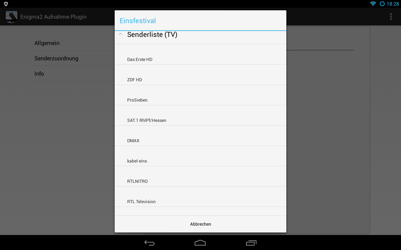 Dengan plugin ini anda boleh program rancangan pada penerima Enigma2. Beberapa penerima dikendalikan. Ia juga (Seperate Video App z. B. VLC atau MX Player diperlukan) adalah mungkin untuk menukar saluran semasa penerima untuk aliran saluran TV untuk melihat dan aufgenomme siaran.