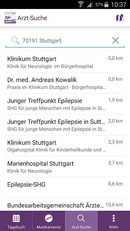 Sie sind innerhalb Deutschlands unterwegs und brauchen schnelle Hilfe durch einen Epilepsie-Spezialisten? Die Adress-Datenbank hilft Ihnen, Kliniken oder Praxen im Umkreis Ihres aktuellen Standortes oder einer beliebigen Postleitzahl zu finden.