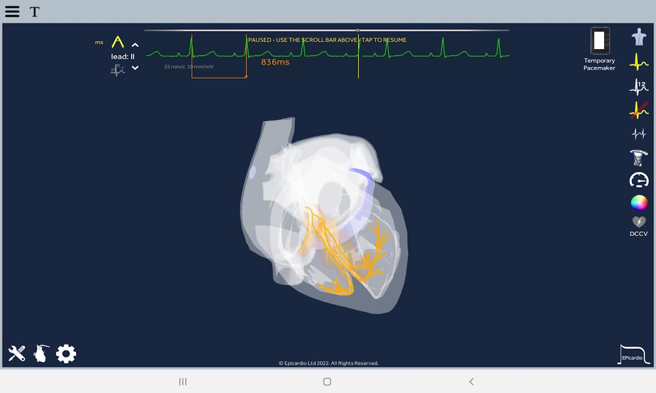 Dibangunkan untuk sesiapa sahaja yang berminat untuk menguasai kerumitan fungsi elektrik jantung. Aplikasi ini membantu profesional penjagaan kesihatan dan pelajar perubatan/kejururawatan memperoleh pemahaman yang lebih mendalam tentang ECG. Ia menggunakan penerokaan 3D masa nyata interaktif untuk membantu pembelajaran irama jantung.