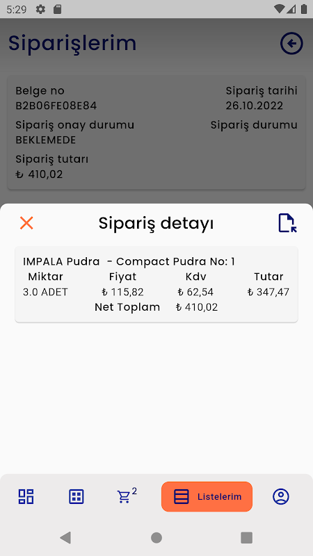Dengan aplikasi EQLEM B2B, anda boleh mengambil pesanan pengedar, pemborong, pengedar atau pelanggan terus anda, dan pelanggan anda boleh mengakses sejarah pesanan mereka, status pesanan, risiko semasa dan maklumat penyata.