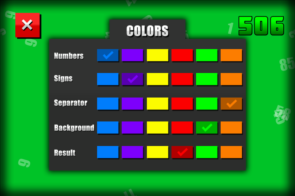 Menyamakan - berwarna-warni adalah versi berwarna-warni Equalizing, permainan teka-teki matematik di mana matlamat anda adalah untuk membuat kedua-dua pihak sama menggunakan 4 tanda-tanda matematik: tambah, tolak, darab, dan bahagi.