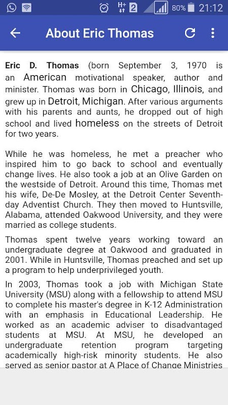 This application contain motivational speech by Eric Thomas. You can listen it anytime and anywhere.