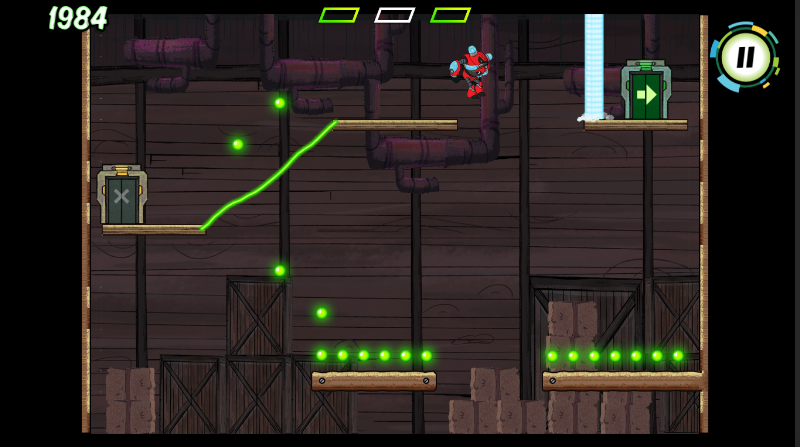 alien hero is in a hurry, and once the game starts, he will start running through the exit door. You need to draw a line with your mouse and create the path to the exit door. In his way, he needs to collect all the power-ups he can so he will not run out of energy.
