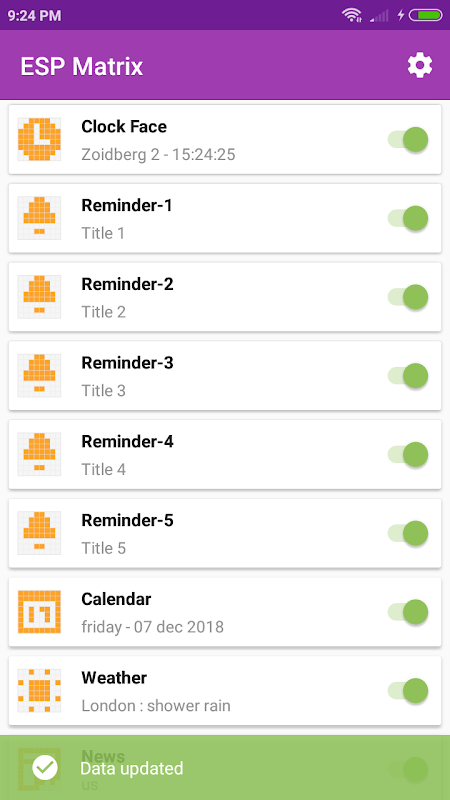 Ia berjalan sepenuhnya secara autonomi dan dikonfigurasikan dan dikawal melalui aplikasi ESP Matrix, dengan aplikasi ini anda boleh membuat Pemberitahuan Smart Clock & Smart berdasarkan IoT ESP8266, mengkonfigurasi dan menetapkan peranti ESP Matrix sangat mudah hanya menggunakan aplikasi ini dengan antara muka yang mudah.