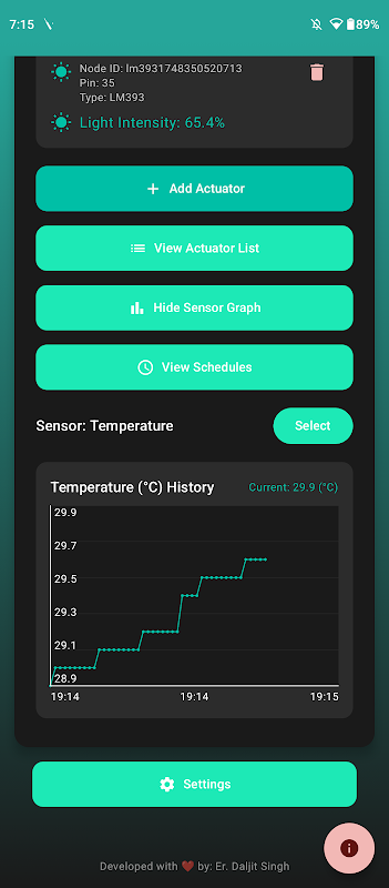Selamat datang ke ESP32 SmartCore, aplikasi kawalan IoT terbaik untuk rumah pintar berkuasa ESP32 anda! Urus kipas, lampu dan penderia dengan lancar dengan ketepatan masa nyata. Direka bentuk eksklusif untuk mikropengawal ESP32, ESP32 SmartCore menawarkan antara muka yang anggun dan mesra pengguna untuk memantau dan mengawal peranti anda dari mana-mana sahaja.