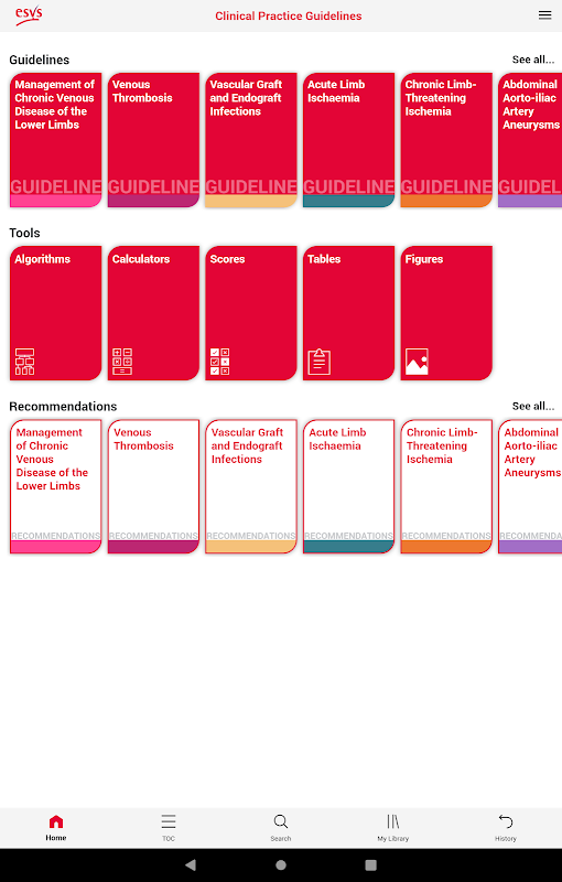 Aplikasi garis panduan Persatuan Pembedahan Masyarakat Eropah (ESVS) mengumpul bersama-sama garis panduan amali klinikal baru yang diterbitkan oleh pakar dalam bidang. Garis panduan ini boleh didapati dalam bentuk mudah dibaca untuk kegunaan mudah dalam amalan harian. Cadangan untuk diagnosis dan rawatan penyakit pembedahan vaskular sedia ada. Aplikasi ini mengandungi teks asal garis panduan yang menerangkan juga bukti di sebalik cadangan. Algoritma, kalkulator, dan skor interaktif telah ditambah untuk membantu pengguna dalam kerja harian klinikal. Aplikasi ini memudahkan navigasi, carian dalam aplikasinya, menanda halaman yang berguna, dan mengambil nota. Setelah dimuat turun, aplikasi boleh digunakan di luar talian.