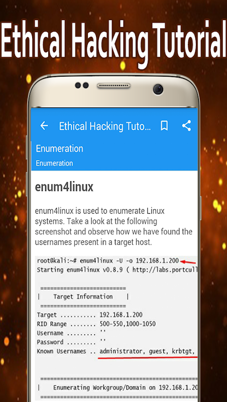 Ethical Hacking Tutorial application you can enhance your skills in ethical hacking and make yourself much secure then others or if you are new then you can make yourself professional in few consumption of time and aware yourself with Hacking attacks.