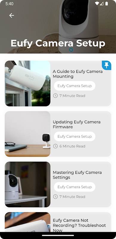 Panduan Persediaan: Aplikasi ini menyediakan panduan persediaan yang jelas dan ringkas untuk semua model kamera Eufy. Ia merangkumi konfigurasi kamera awal, persediaan akaun dan penyegerakan apl. Katakan selamat tinggal kepada kekeliruan dan hello kepada ketenangan fikiran.