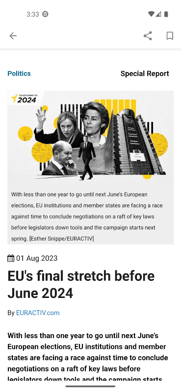 Dengan aplikasi mudah alih Euractiv, anda boleh: