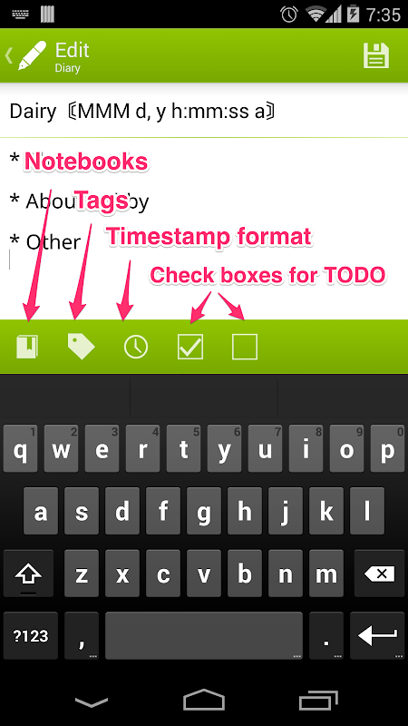 - You can now enter the format of the date, it is now possible to automatically insert the date and time of creation to note when creating.
