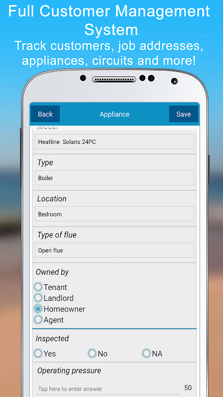 -Full Customer Database – Stores and Saves Customer, Job Address and Appliance Details.