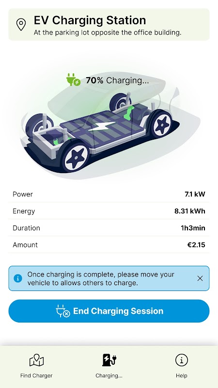 • Cari stesen pengecasan: Segera cari stesen pengecasan yang tersedia berdekatan untuk merancang perhentian anda dengan mudah.