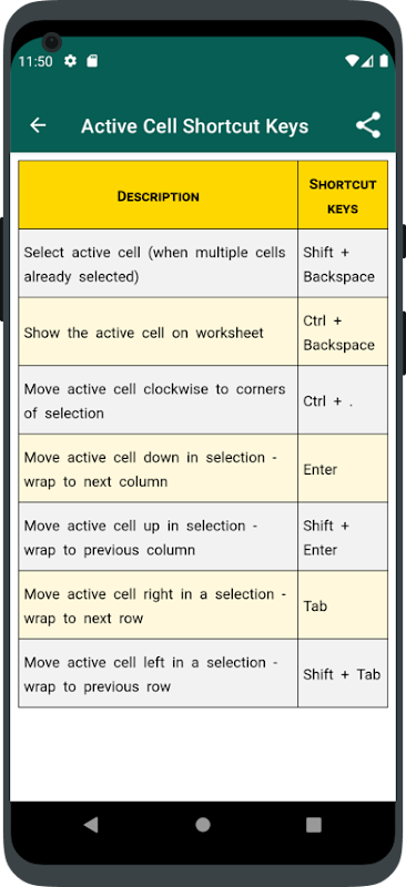Maklumat APK Excel Shortcut Keys
