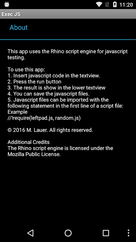 Aplikasi ini boleh menjalankan dan menguruskan skrip Java. Skrip Java dilaksanakan oleh Rhino Script Engine. Skrip boleh disimpan dan dimuatkan semula.