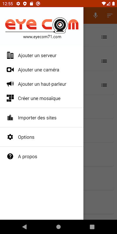 Lihat kamera pelayan rakaman Eye Com anda dari telefon atau tablet Android anda. Ia juga mungkin untuk mengkonfigurasi dan menggunakan kamera secara bebas daripada pelbagai jenama: Axis, DLink, IQeye, Mobotix, Sony, Vivotek ...