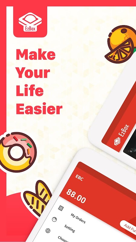 EzBox (pronounced easy-box) app allows you to pay EBC (EzBox Coin) to buy items on various EzBox vending machines.