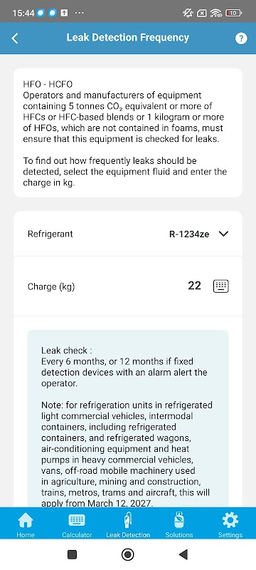 - Modul pengesanan kebocoran untuk memaklumkan anda tentang kekerapan pemeriksaan pengesanan kebocoran yang perlu dijalankan bergantung pada jenis cecair proses yang digunakan. Pemeriksaan kebocoran sebenarnya adalah wajib untuk semua penyejukan, penyaman udara, pam haba dan peralatan pensuisan elektrik yang mengandungi gas rumah hijau berfluorinasi.