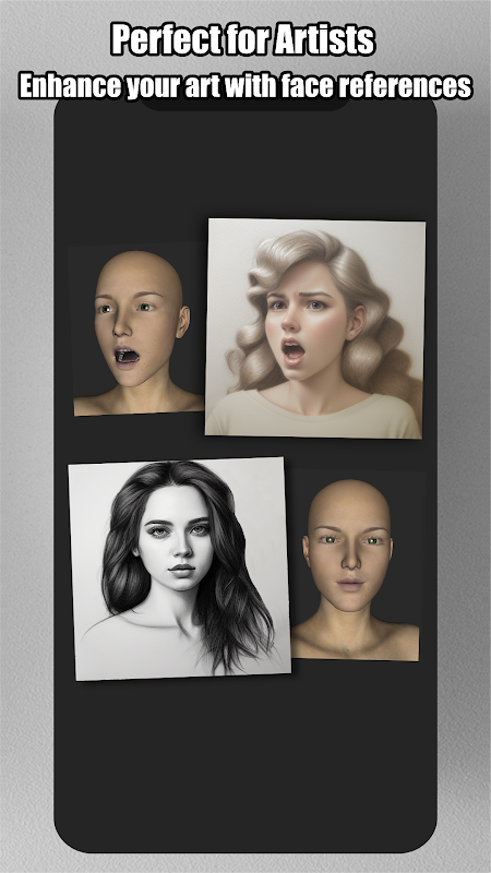 Baru! Aplikasi ini kini termasuk model tengkorak manusia 3D untuk rujukan anatomi yang lebih terperinci dan perpustakaan rujukan wajah manusia yang komprehensif dengan ratusan imej muka yang dikategorikan. Rujukan muka ini diisih mengikut etnik, termasuk Asia, Hitam, Putih, Hispanik, Asia Selatan dan MENA (Timur Tengah dan Afrika Utara). Apl Model Wajah menawarkan dua jenis imej rujukan: foto paparan tunggal yang menangkap muka secara langsung dan imej berbilang paparan yang mempamerkan empat sudut (pandangan hadapan, sisi dan tiga suku).