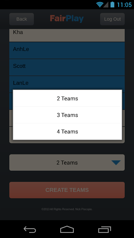 Ever need to create teams for a sports game, board game, or the like? Ever try dividing teams up but guessed at how good a person is? Ever get picked last for a team and not like it? FairPlay will divide up teams evenly based on win percentage.