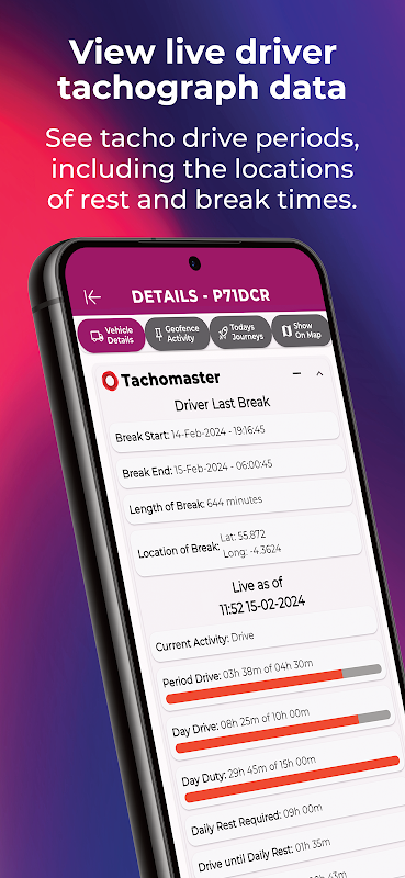- anda boleh menyemak status dan rehat pemandu, juga tersedia di laman web Tachomaster;