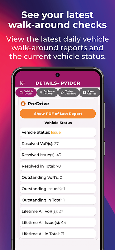 - anda boleh menyemak laporan kenderaan terakhir, juga tersedia di laman web PreDrive.