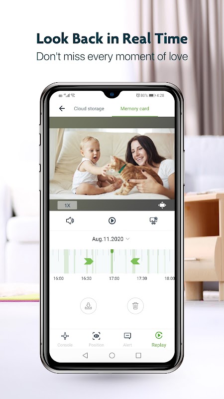 Aplikasi ini membolehkan anda melihat rumah anda dalam masa nyata 24/7, dan menghantar amaran aktiviti untuk memberitahu anda mengenai sebarang aktiviti pergerakan yang tidak dapat dikesan, anda bahkan dapat melihat video yang dirakam.