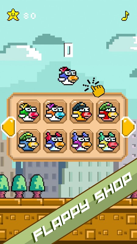 - Various pixel birds (Go to Flappy shop to buy other birds)
